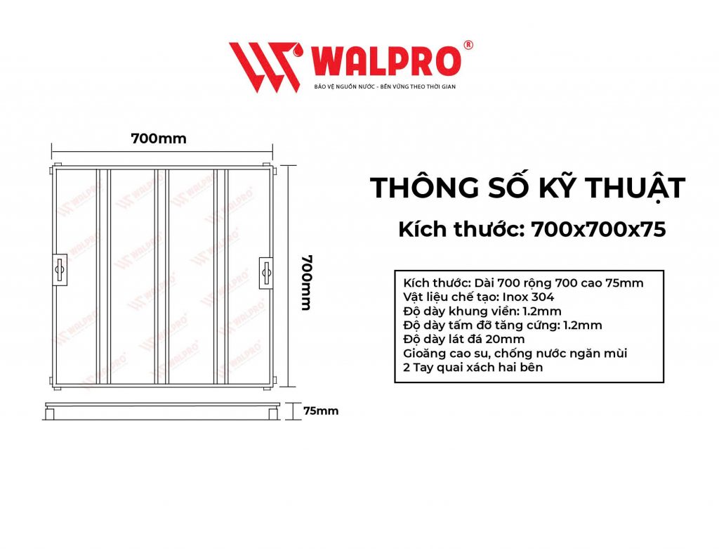 Nắp bể ngầm Walpro là sản phẩm công năng thay thế cho các loại nắp đậy kiểu cũ như nắp bể nước ngầm, Nắp Bể Nước Ngầm có khả năng chống nước, ngăn mùi cao, sáng bóng, bền đẹp, được làm hoàn toàn bằng INOX 304 chống gỉ An toàn. Thiết kế khay âm để lát các loại vật liệu lên, phù hợp cho mọi không gian. Đóng mở tiện lợi. Lắp đặt dễ dàng. Sản phẩm bảo hành chính hãng 5 năm, Bể nắp ngầm inox âm sàn Walpro đã mang tới hàng chục ngàn ngôi nhà trên cả nước những chiếc nắp bể thông minh – đem đến giải pháp tốt nhất bảo vệ cho những bể nước ngầm trong nhà bạn. gọi ngay 0976.529.518 để được báo giá tốt nhất.